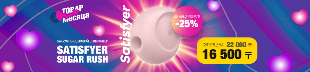 Успейте до 14 февраля приобрести вакуумно-волновой стимулятор Sugar Rush от Satisfyer со скидкой –25% в любом магазине Extaz.kz в Алматы, Астане или Шымкенте, а также при заказе онлайн на сайте.!