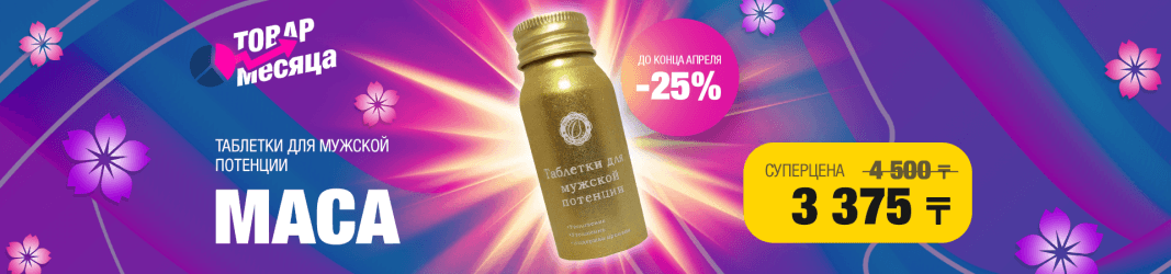 Скидка -25% на таблетки для мужской потенции MACA (10 таб.) активна весь апрель во всех магазинах Extaz.kz в Алматы, Астане и Шымкенте, а также при заказе онлайн на сайте.