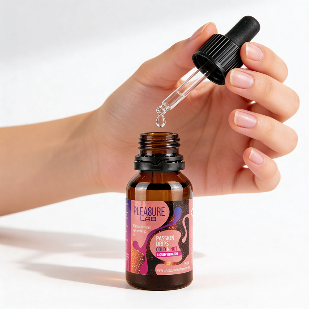 Pleasure Lab Passion Drips Cold n Hot - средство с выраженным тактильным эффектом, которое работает за счёт воздействия на рецепторы кожи. При нанесении появляется ощущение лёгкого покалывания и пульсации без механического воздействия, что делает контакт более заметным и динамичным.