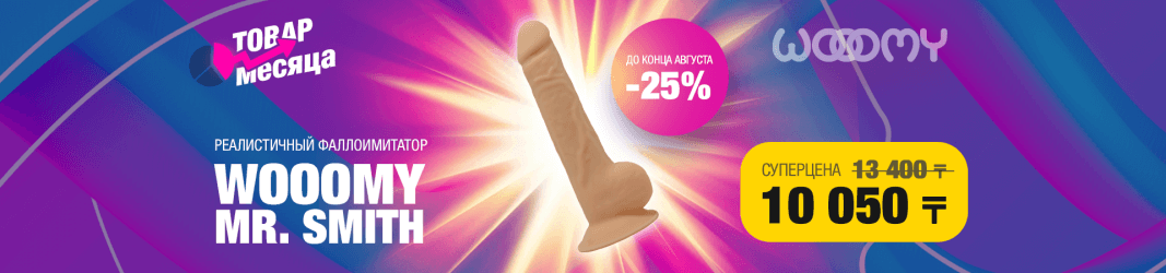 С 1 по 31 августа во всех магазинах Extaz.kz и при заказе онлайн действует скидка 25% на фаллоимитатор реалистичный Mr. Smith от WOOOMY с приятными размерами: 17,5 см в длину и 3,5 см в ширину.