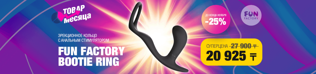 Впервые скидка весь месяц на девайс от одного из самых популярных и крутых производителей секс игрушек Fun factory! А именно скидка -25% весь ноябрь на эрекционное кольцо с анальным стимулятором Bootie Ring от Fun Factory!