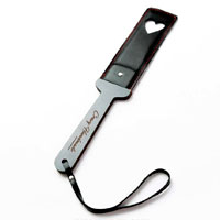 Рукоять из матового дерева ложится в руку уверенно и приятно на ощупь, создавая ощущение контроля и силы. Рабочая поверхность из мягкой, но прочной натуральной кожи оформлена фигурным вырезом в форме сердца — деталь, которая соединяет строгость с чувственностью. Контрастная красная строчка подчёркивает контур, усиливает надёжность конструкции и добавляет яркий визуальный штрих.