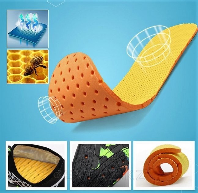 Модель удобно садится на ногу и фиксируется без шнурков, благодаря мягкому эластичному канту. Аквашузы можно использовать для купания, занятий водными видами спорта, прогулок по пляжу или отдыха на природе. Яркие цветные вставки на подошве добавляют динамики и современный акцент в дизайн.