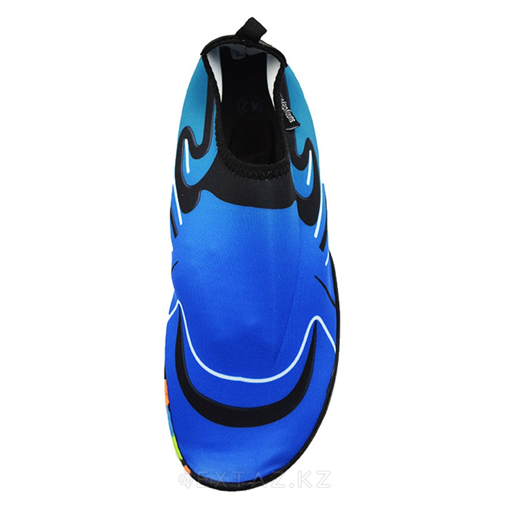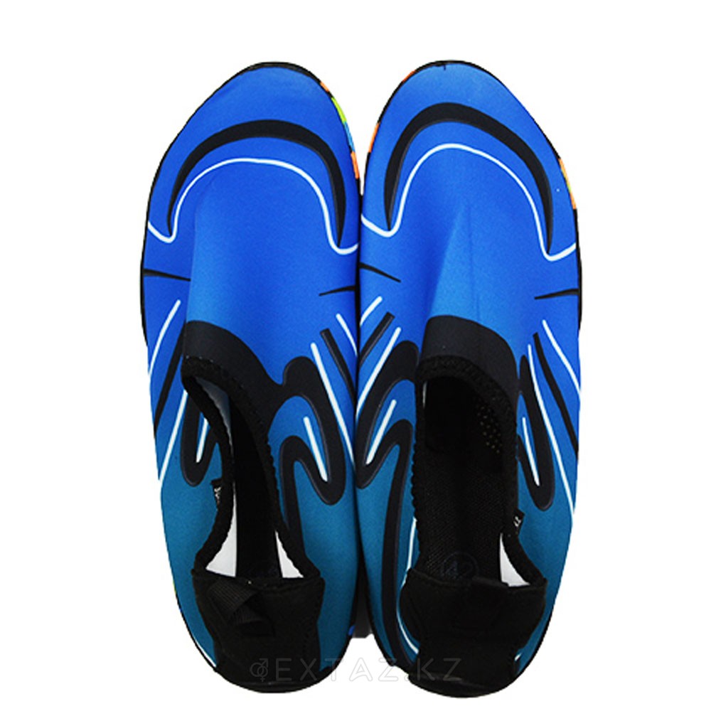 Подошва из прочного и эластичного материала создаёт надёжное сцепление с поверхностью, предотвращая скольжение. Аквашузы быстро сохнут и легко надеваются благодаря мягкой эластичной манжете. Синий цвет и волнообразный принт добавляют динамичности, делая модель стильным элементом летнего гардероба.