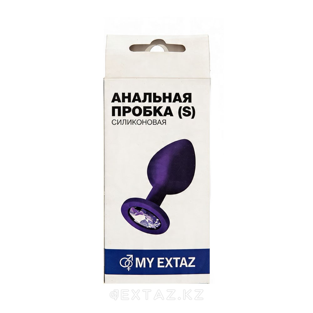 Анальная пробка из фиолетового силикона с бирюзовым кристаллом (размер S)