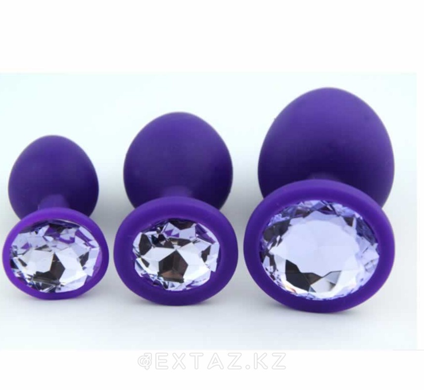 Анальная пробка из фиолетового силикона с синим кристаллом (размер S)