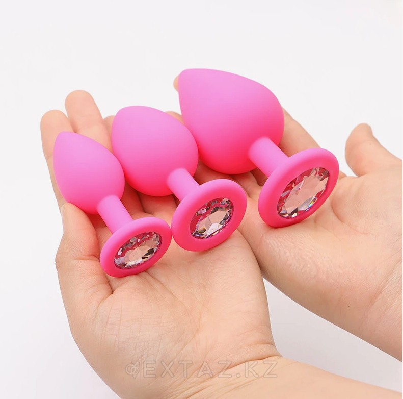 Анальная пробка из розового силикона с белым кристаллом (размер S)