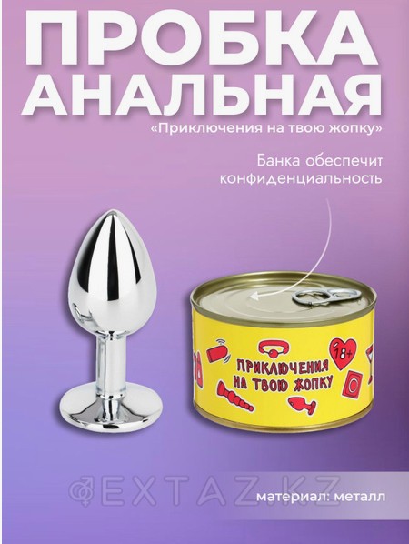 Оригинальная анальная пробка «Приключения на твою жопку» — это стильная и универсальная игрушка, подходящая как для мужчин, так и для женщин. Поставляется в жёсткой металлической банке, что делает её отличным подарком или ярким элементом коллекции.