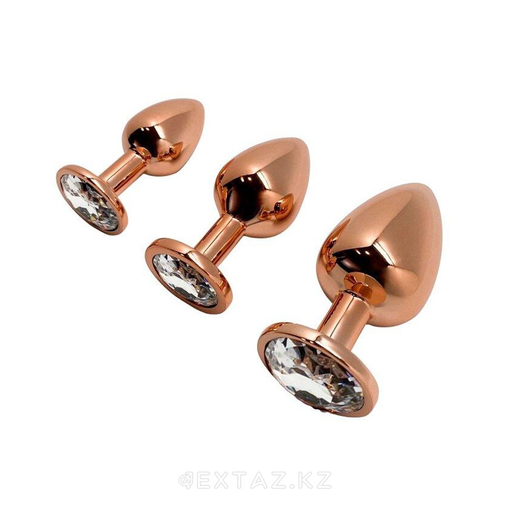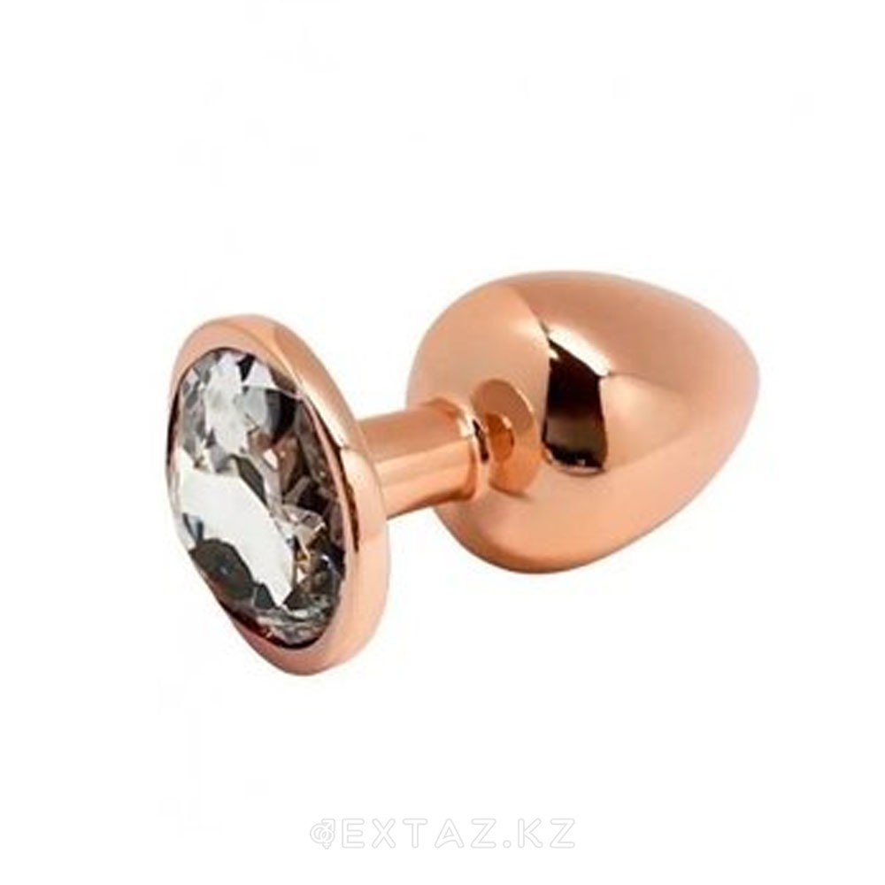 Анальная пробка золотистого цвета с белым кристаллом Tralalo от WOOOMY (M: 8*3,4 см.)