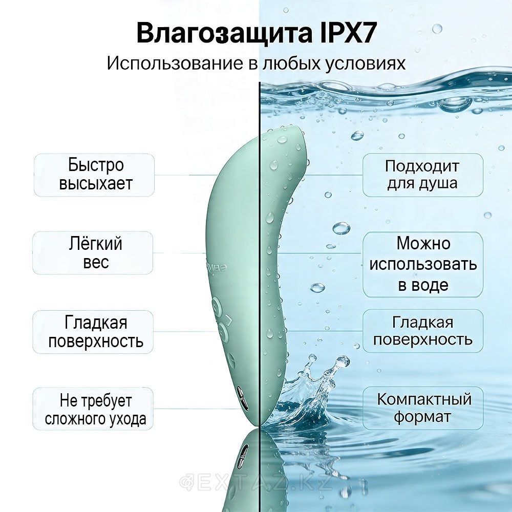 Функция Smart Silence активирует устройство только при контакте с телом, снижая уровень шума и делая использование более незаметным. Корпус полностью водонепроницаем по стандарту IPX7, что упрощает очистку и позволяет использовать устройство в условиях повышенной влажности.