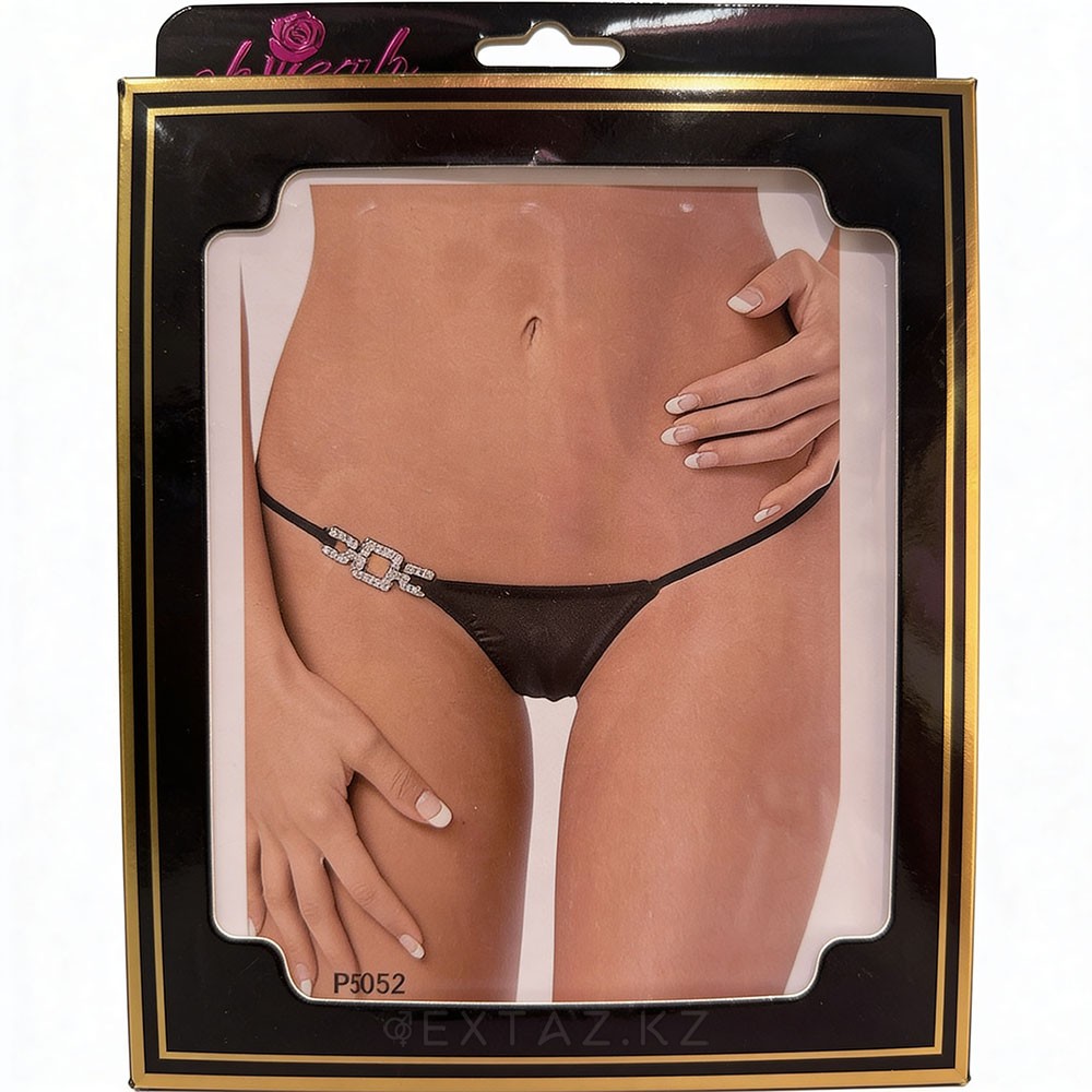 Низкая посадка изящно подчёркивает линии бёдер, а аккуратный декор из серебристых камушков добавляет образу тонкий блеск и нотку роскоши. Чёрный цвет усиливает глубину образа, делая его одновременно дерзким и утончённым. Ничего лишнего — только чистая эстетика, сексуальность и уверенность в себе.