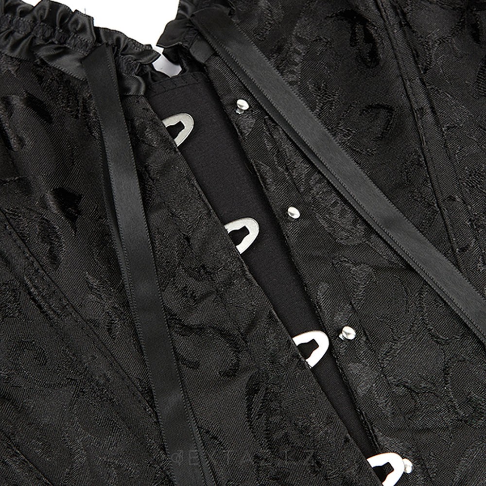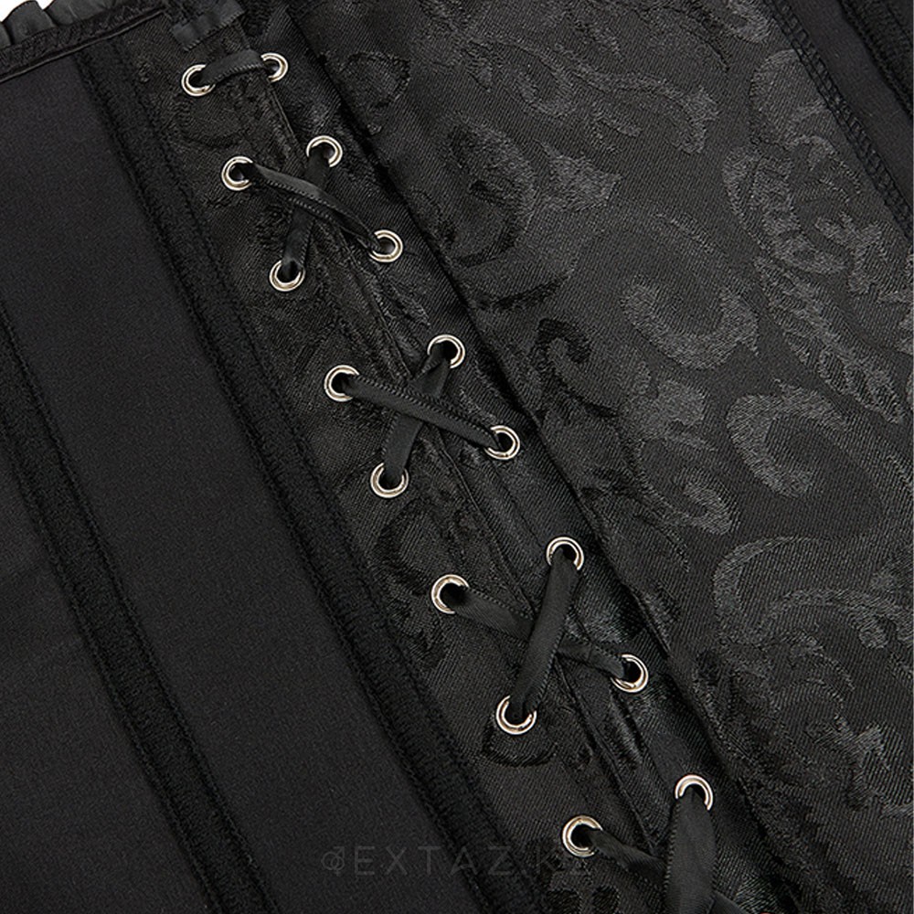 Элегантный корсет с цветочным принтом и аккуратной отделкой по краю. Модель визуально подчеркивает линию декольте и формирует силуэт «песочных часов» за счёт продуманной посадки и фронтальных застёжек. Декоративный бант и серебристая фурнитура добавляют образу аккуратный акцент. Универсальный выбор для повседневных и тематических образов, когда важны опрятность, посадка и комфорт.