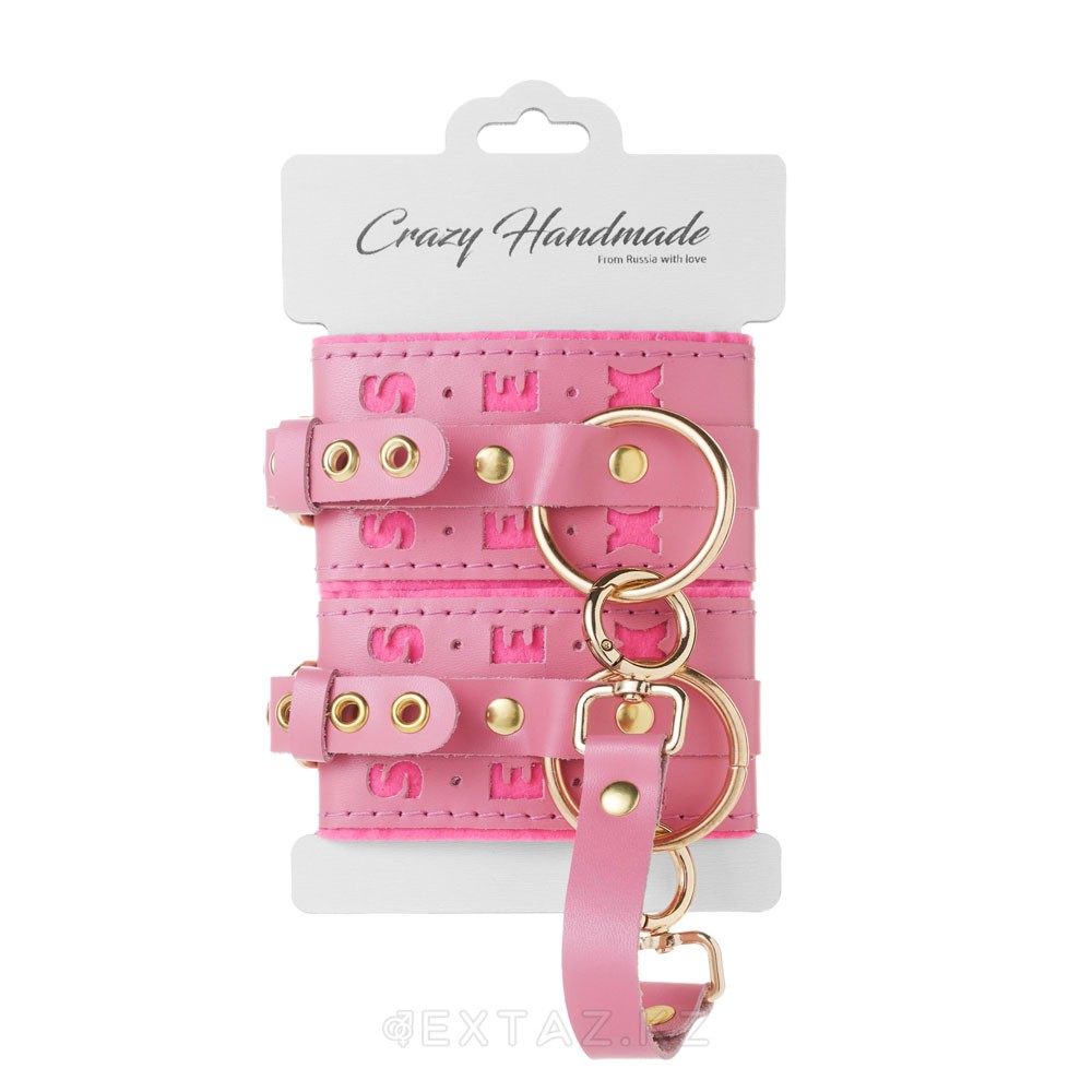 Розовые кожаные оковы с надписью «SEX» — символ дерзости и страсти. Внутренняя сторона, мягкий фетр, нежно касается кожи, даря комфорт при каждом движении. Надежная стальная фурнитура с золотистым покрытием придаёт аксессуару прочность и элегантность, а кожаный соединитель с двумя карабинами превращает оковы в универсальный инструмент для любых игр.