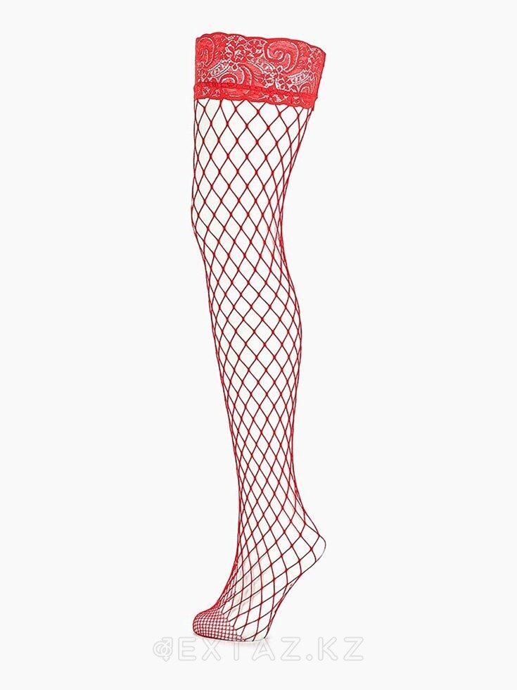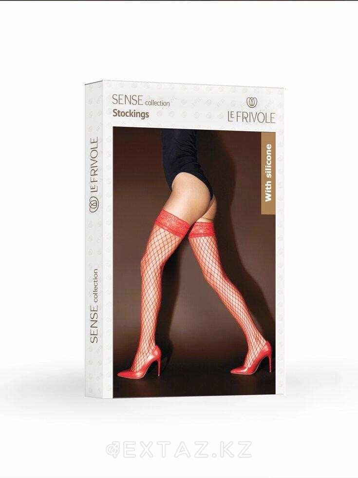 Чулки красные в крупную сетку с кружевной резинкой на силиконе Sense, S/M
