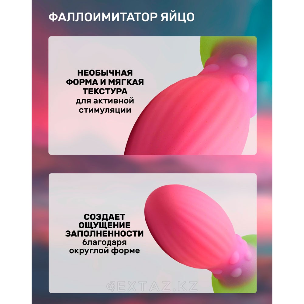 Игрушка словно создана из фантазийной галактики: светящееся яйцо напоминает артефакт внеземной природы или часть анатомии таинственного существа. Суженный кончик обеспечивает легкое введение, а широкий корпус раскрывает насыщенность ощущений. Особенное удовольствие дарит момент "откладывания яйца", когда его выталкивание становится частью игры.