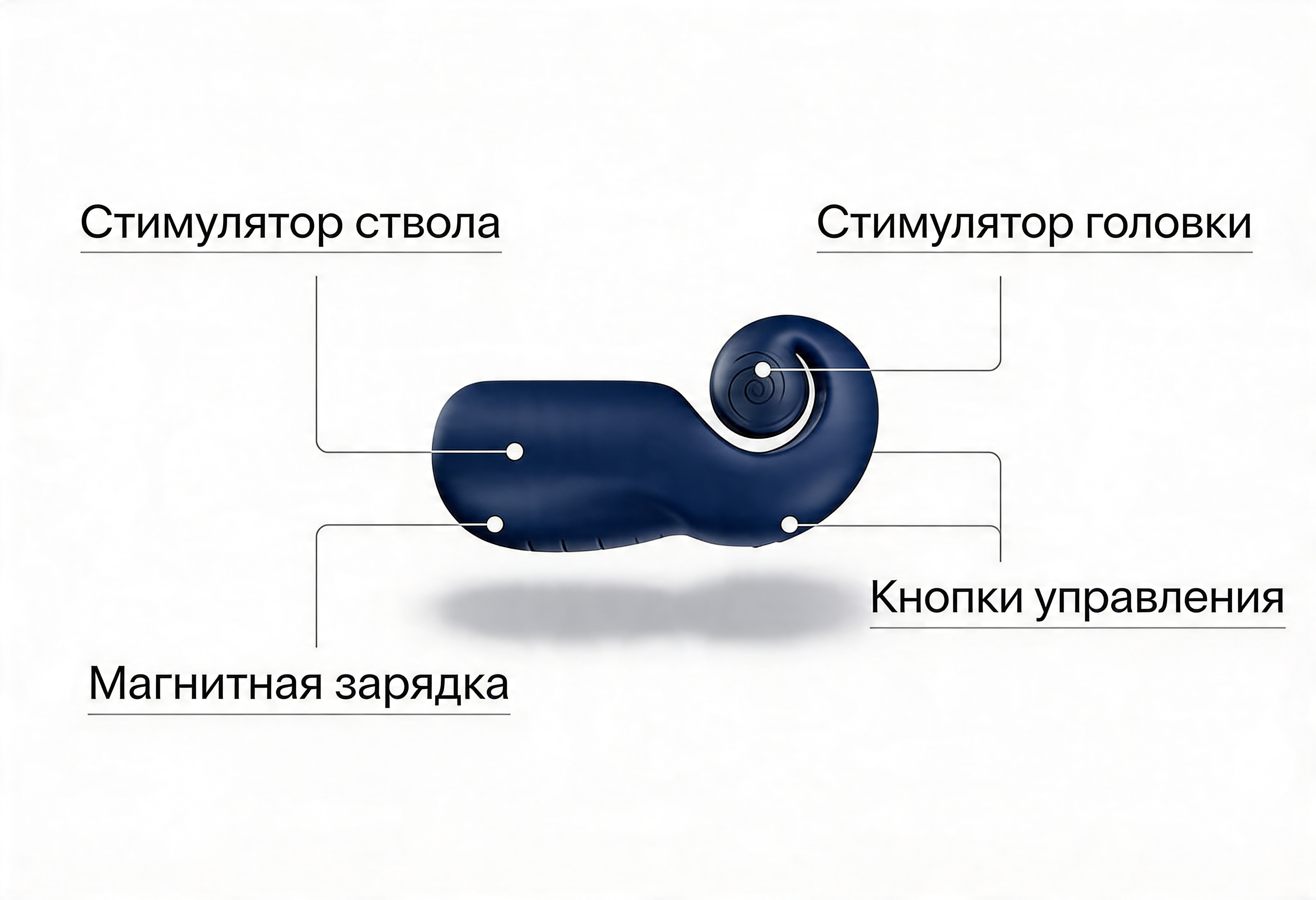 Модель оснащена двумя независимыми моторами, которые обеспечивают комбинированную работу разных зон. Спиральный элемент усиливает динамику за счёт движения, а основной модуль создаёт направленные вибрации. Такая комбинация формирует многослойное воздействие с возможностью настройки под индивидуальные предпочтения.