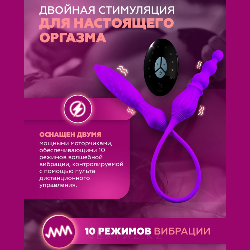 Устройство выполнено из мягкого гипоаллергенного силикона с бархатистой поверхностью и имеет два функциональных конца, соединённых гибким шнуром — это обеспечивает удобство в использовании и разнообразие сценариев. Встроенные два моторчика предлагают 10 режимов вибрации, управление которыми возможно при помощи пульта дистанционного управления. Уровень влагозащиты IPx5 обеспечивает устойчивость к воздействию водяных брызг. Универсальный дизайн, приятные материалы и простота в управлении делают этот аксессуар надёжным выбором для комфортного и приятного взаимодействия.