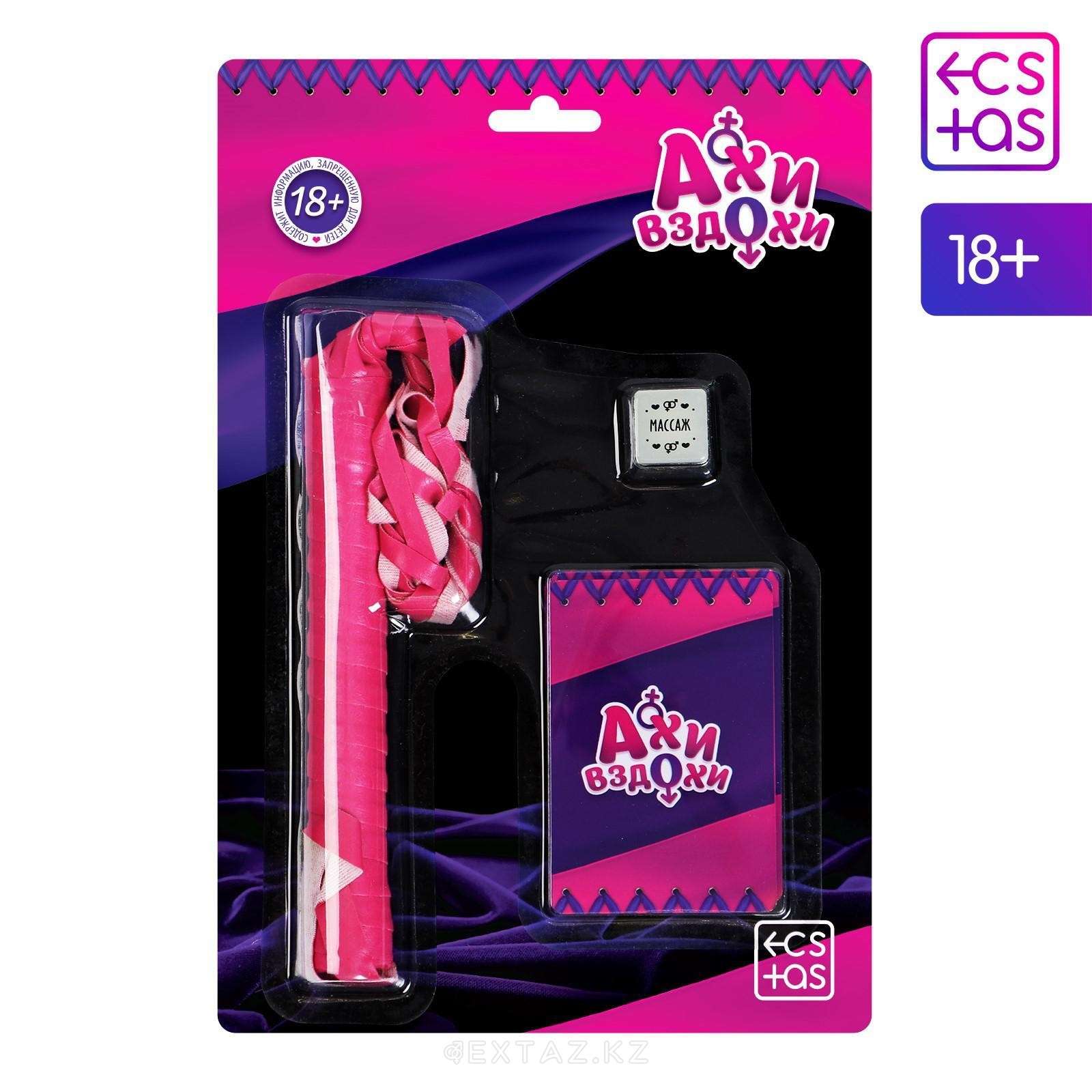 Эротический набор "Ахи вздохи" (плетка, 1 кубик, фанты) 4672575