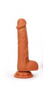 Фаллоимитатор CIBERSKIN - натуральных среднестатистических  размеров. С мошонкой. Длина - 22 см. Фалллоимитатор из силикона, не гнется. Можно использовать в тандеме с лубрикантами на водной основе.