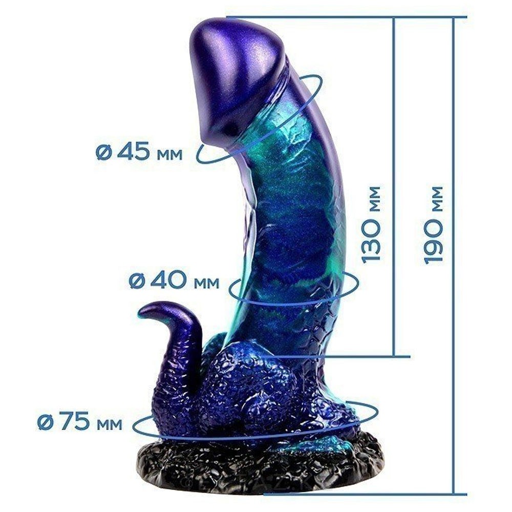 Фаллоимитатор выполнен из гибкого, упругого материала, легко сгибается и не теряет форму. А необычное сочетание фиолетового и зелёного с перламутровым переливом делает его не только функциональным, но и эстетически эффектным. Каждая игрушка имеет уникальный окрас — ты получаешь по-настоящему индивидуальный аксессуар.