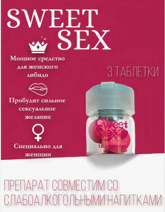 Sweet SEX — женский возбудитель, созданный для усиления сексуального желания и обострения ощущений во время близости. Средство помогает настроиться на интим, снять внутренние зажимы и позволить себе больше свободы и смелости в отношениях с партнёром. Идеально подходит для яркой и эмоциональной ночи.