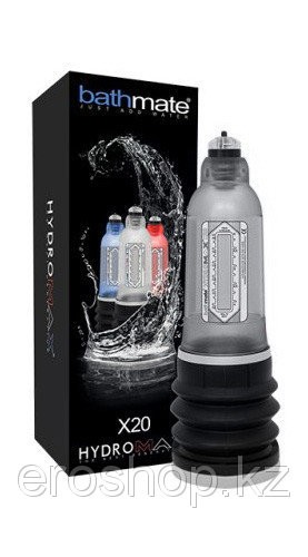 Гидропомпа Hydromax X20 прозрачная Данная модель подходит для пениса длиной от 7,5 до 12,5 см. и толщиной до 4,5 см. в диаметре. Bathmate Hydromax X20 укомплектована более надежным клапаном и мягкой съемной прокладкой для самого комфортного использования. Её можно использовать для увеличения размера пениса самостоятельно, либо в дополнение к экстендеру, для улучшения результата от занятий. Используя гидропомпу совместно с экстендером, вы стимулируете более активный рост тканей пениса двойной нагрузкой различных видов: экстендер работает на общий рост пениса за счет растяжения тканей, а гидропомпа дополнительно стимулирует активный рост в толщину, дополняя действие экстендера. Разнообразная нагрузка делает занятия более результативными, чем однотипная, ускоряя рост.