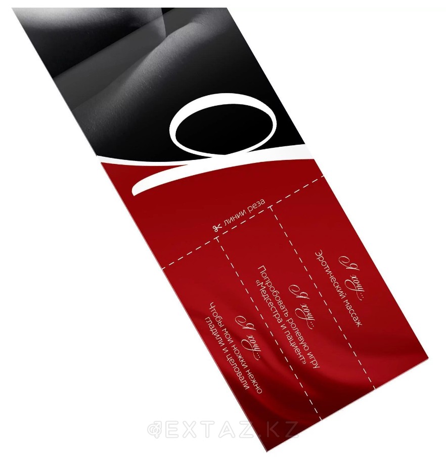 Горячие купоны «Сексуальные фантазии» — это приглашение в мир наслаждения, где нет места стеснению и скуке. Если вы чувствуете, что в отношениях не хватает ярких эмоций, этот набор поможет вернуть страсть и добавить щепотку безумия в интимную жизнь.