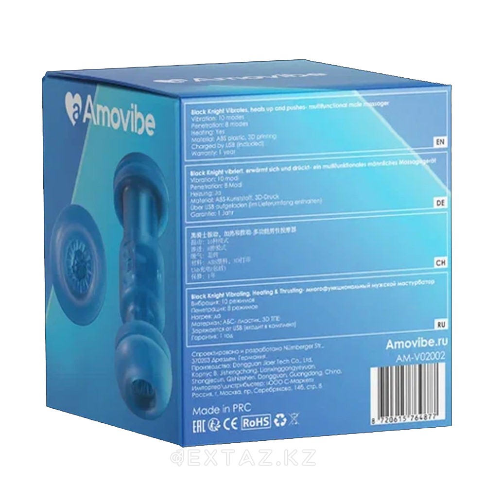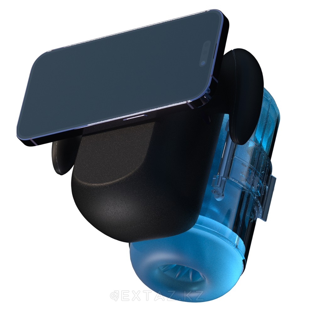 Робот-мастурбатор Black Knight от Amovibe с функциями пенетрации, вибрации и нагрева. 3D TPE-рукав, магнитный держатель для телефона, водозащита IPX6. Размеры 15,9×15,4×13,7 см.