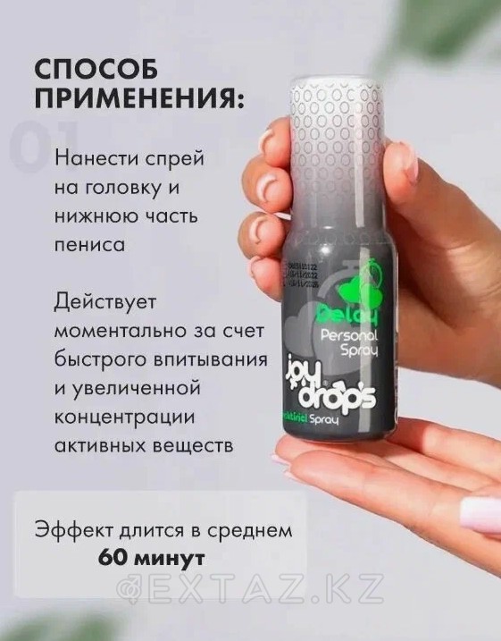 Применение: распылите спрей (2-3 раза) на всю поверхность полового члена за 10-15 минут до секса, дождитесь полного впитывания.