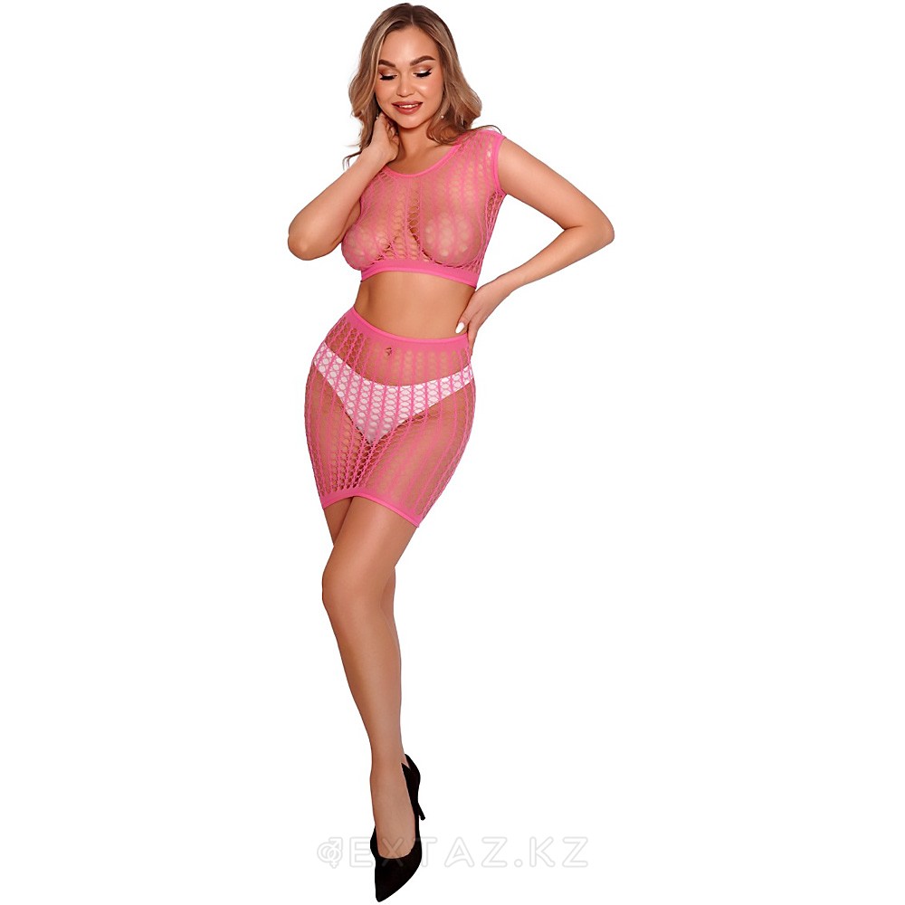 Комплект эротический: топ и юбка из ажурной сетки Amor El, розовый