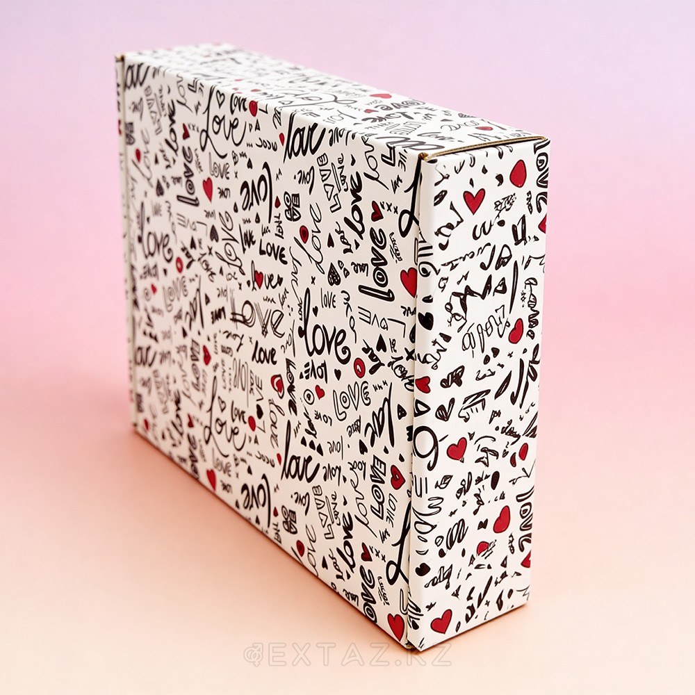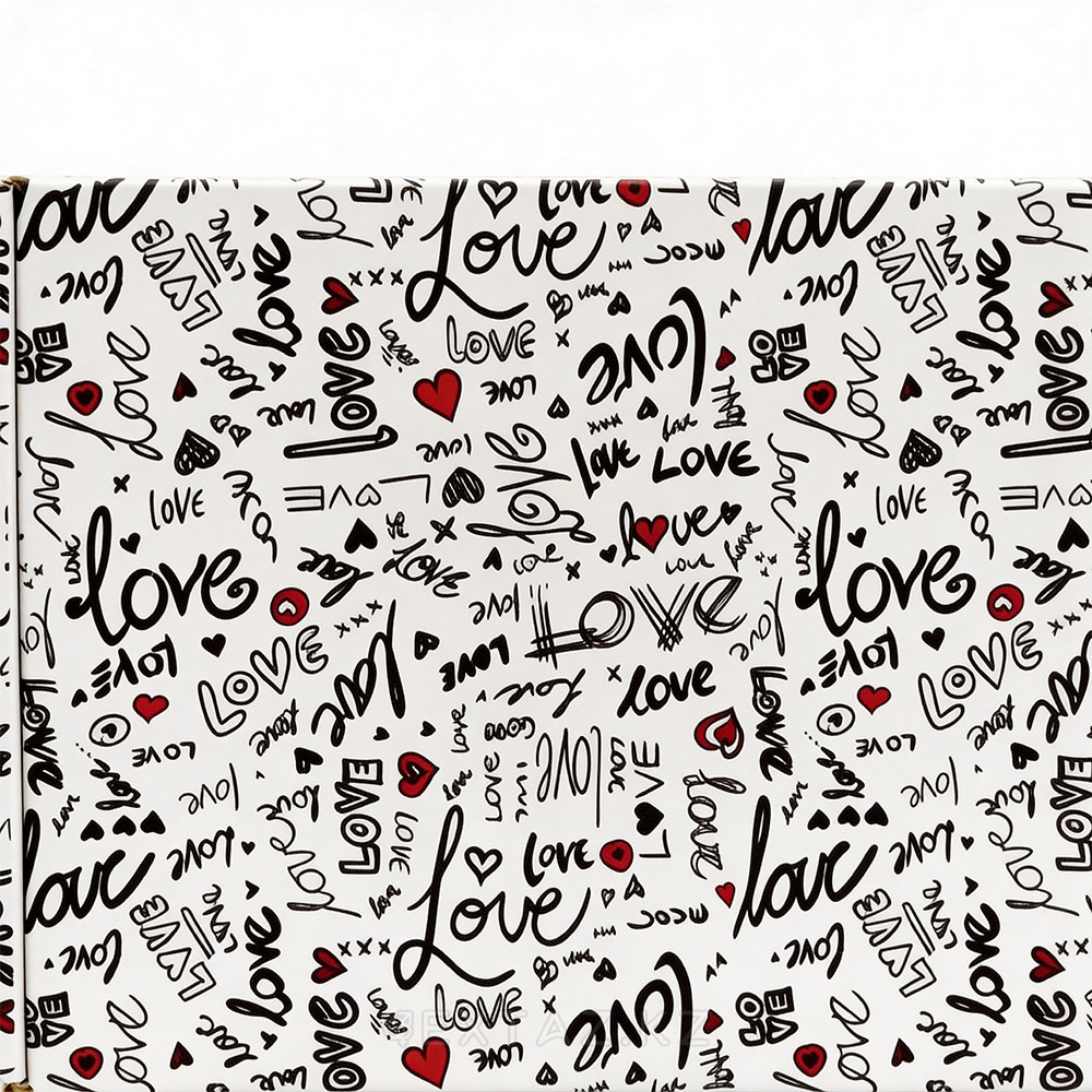 Подарочная коробка "С любовью" выполнена в белом цвете с декоративным принтом в виде надписей Love и красных сердечек. Универсальный дизайн делает её подходящей для оформления подарков ко Дню рождения, годовщине, 14 февраля и другим особым поводам.