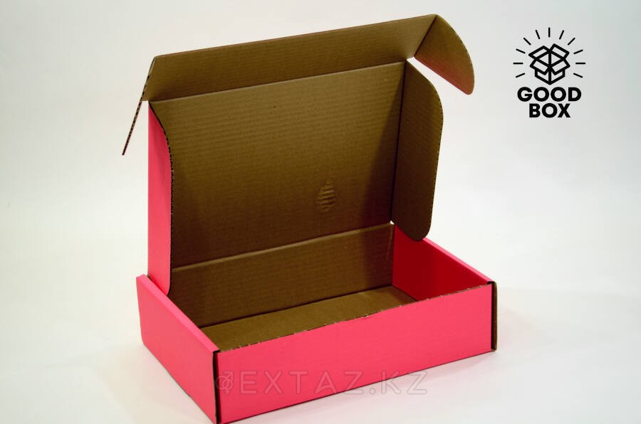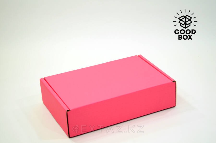 Коробка выполнена из качественного микрогофрокартона, который обеспечивает надёжную защиту содержимого и хорошо держит форму. Насыщенный розовый цвет придаёт упаковке яркий, современный и презентабельный вид — коробка эффектно смотрится без дополнительного декора и сразу готова к вручению.