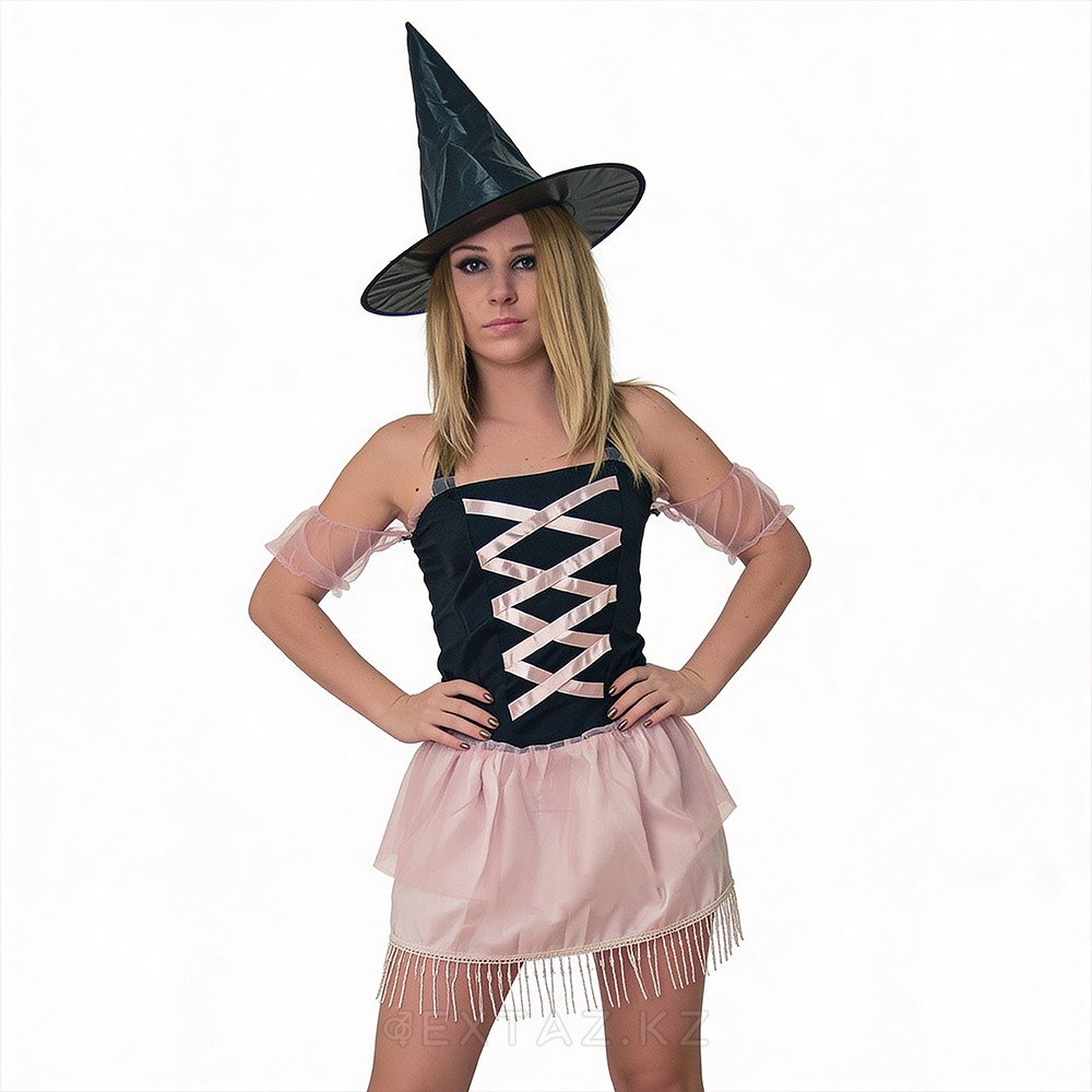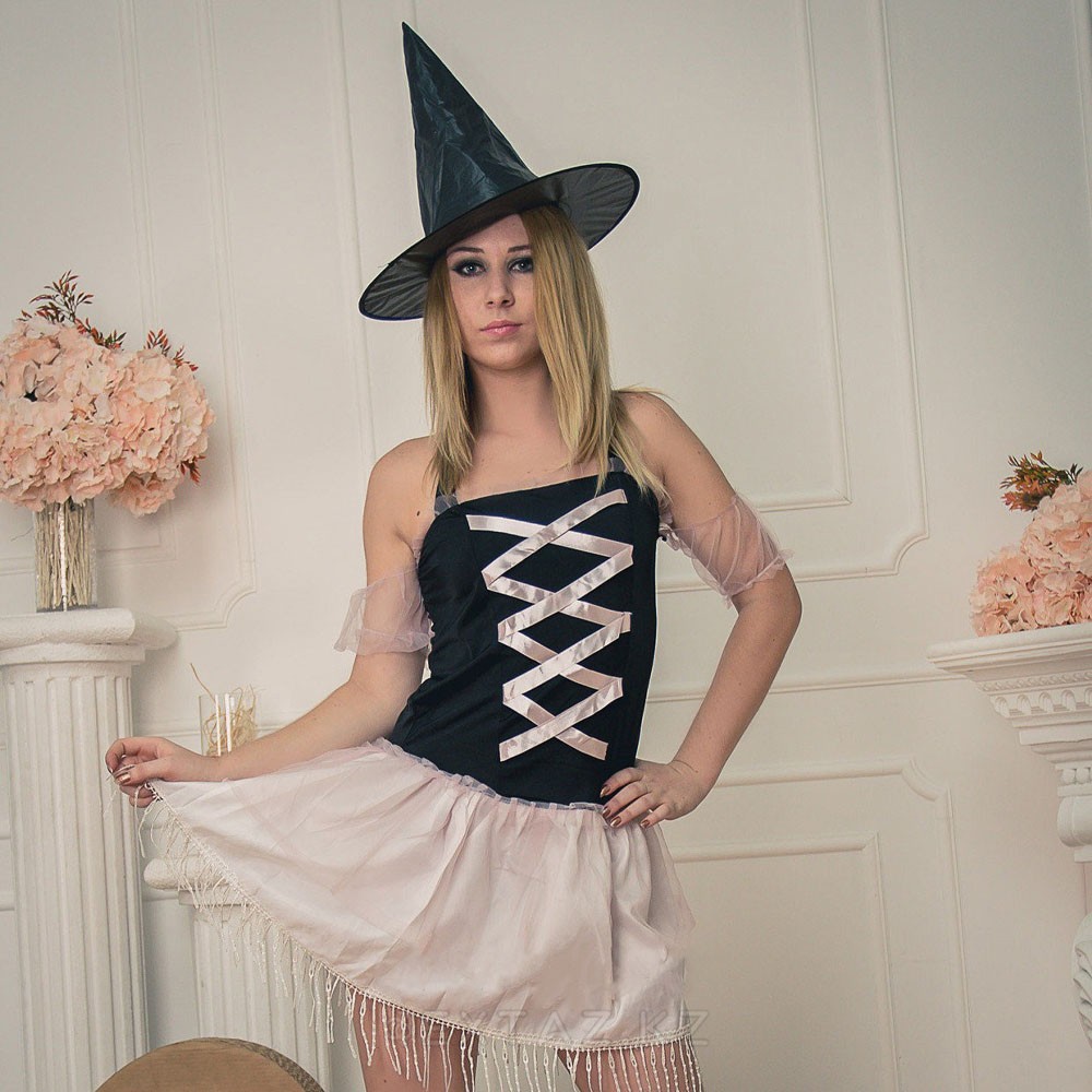 Костюм «Колдунья» — эффектный образ для ролевых игр и тематических вечеринок. Нежное сочетание лёгкой юбочки с бахромой и акцентной шляпки создаёт образ милой, но загадочной чародейки, способной притянуть взгляды и задать нужное настроение.