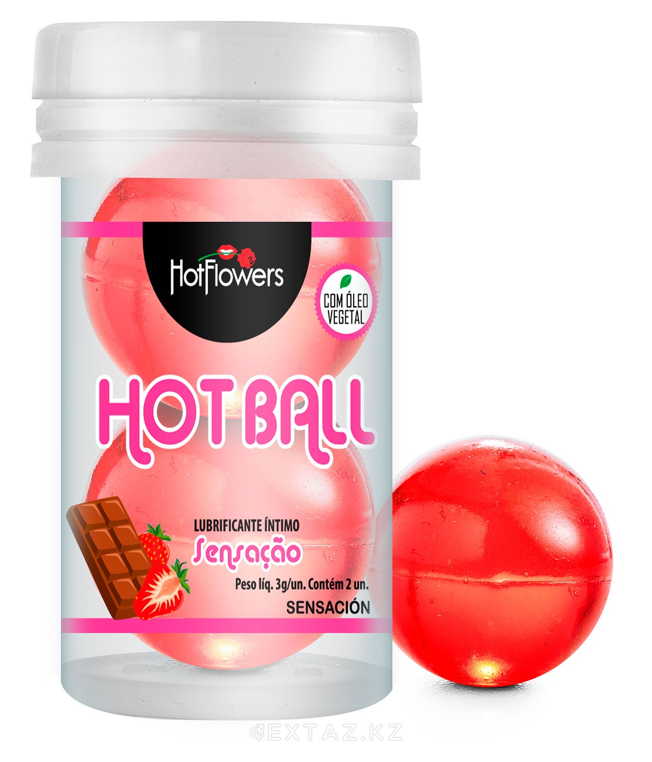 Лубрикант AROMATIC HOT BALL на масляной основе в виде двух шариков (аромат клубники в шоколаде)