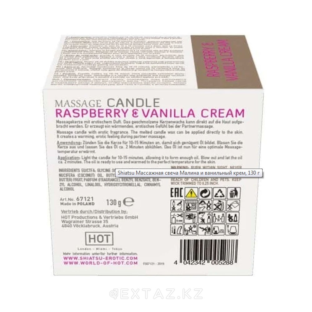 Массажные свечка с ароматом Малина & Ванильный крем от Shiatsu 130 гр.