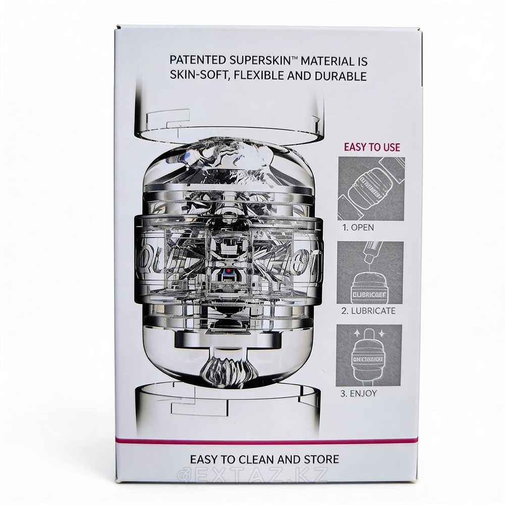 Мастурбатор выполнен из супер мягкого материала SuperSkin, имитирующего настоящую кожу. С одной стороны находится вагинальный вход, с другой — анальный, каждый из которых повторяет реальные формы и текстуру актрисы. Внутренний рельеф тоннеля с ребрышками и пупырышками обеспечивает максимальную стимуляцию полового члена, массируя каждую его часть. Прозрачный корпус позволяет наблюдать за процессом проникновения, усиливая визуальное возбуждение.