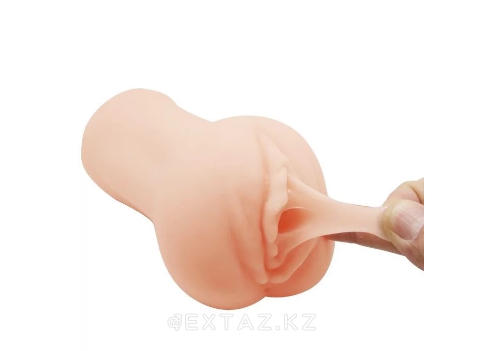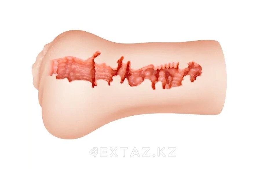 Внешняя часть имитирует женскую вульву с аккуратно проработанным рельефом. Волнистые, слегка приоткрытые половые губы и выраженные складки усиливают визуальную реалистичность. Центральный вход ведёт во внутренний тоннель, который обеспечивает ощущение плотного и естественного контакта.
