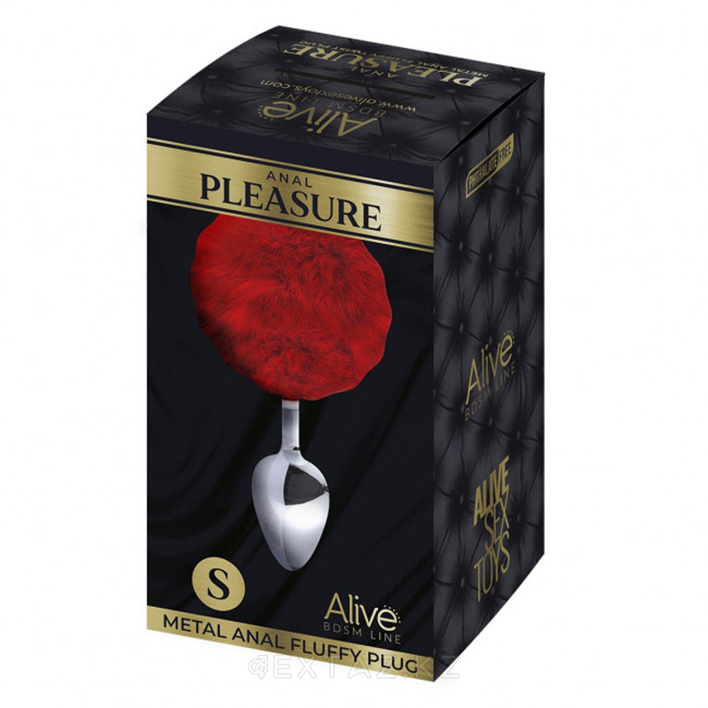 Металлическая анальная пробка с красным хвостиком Fluffy от Alive (7*3,2 см.)