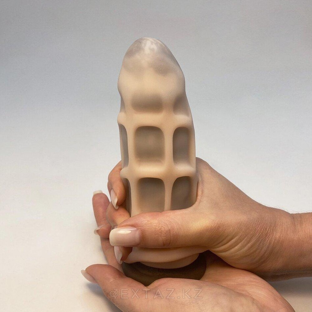 В защитной капсуле с индивидуальным дизайном притаился текстурированный ультрамягкий карман, выполненный из термопластичного эластомера в бежевом цвете. Он очарует вас невероятной имитацией анального секса благодаря плотной дырочке, служащей входом в узенький тоннель с будоражащим внутренним рельефом, который вы прочувствуете душой и телом, взрываясь в бурных кульминациях!