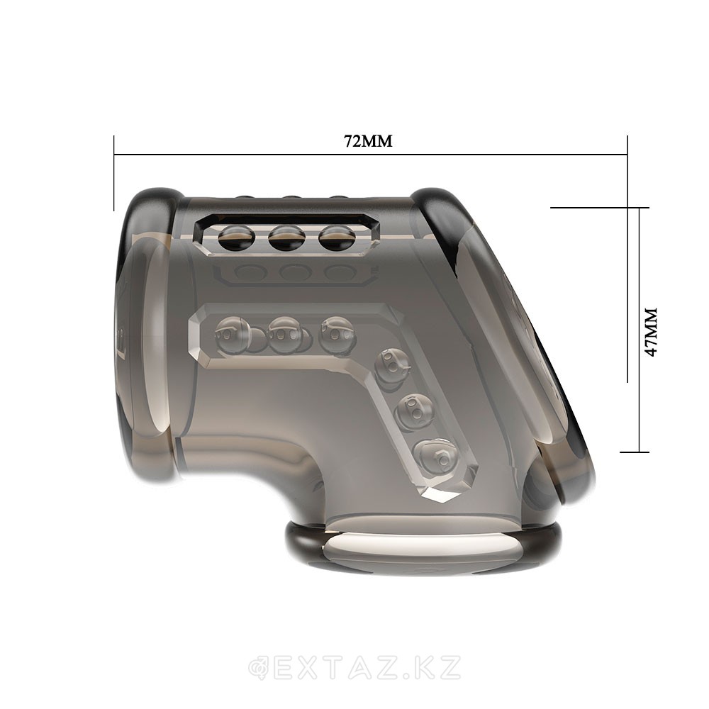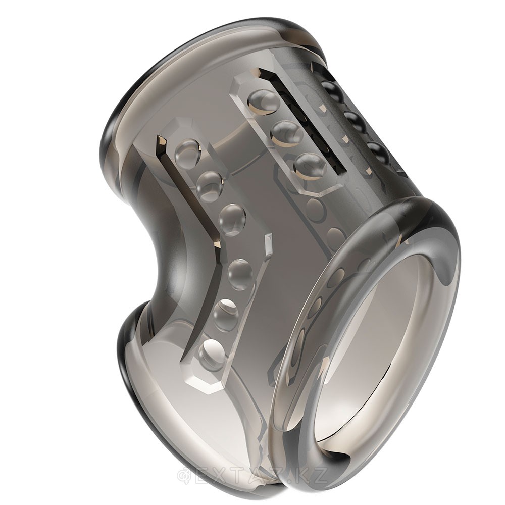 - Комфорт и надёжная фиксация — отверстие для мошонки позволяет насадке удобно держаться и не смещаться во время близости.