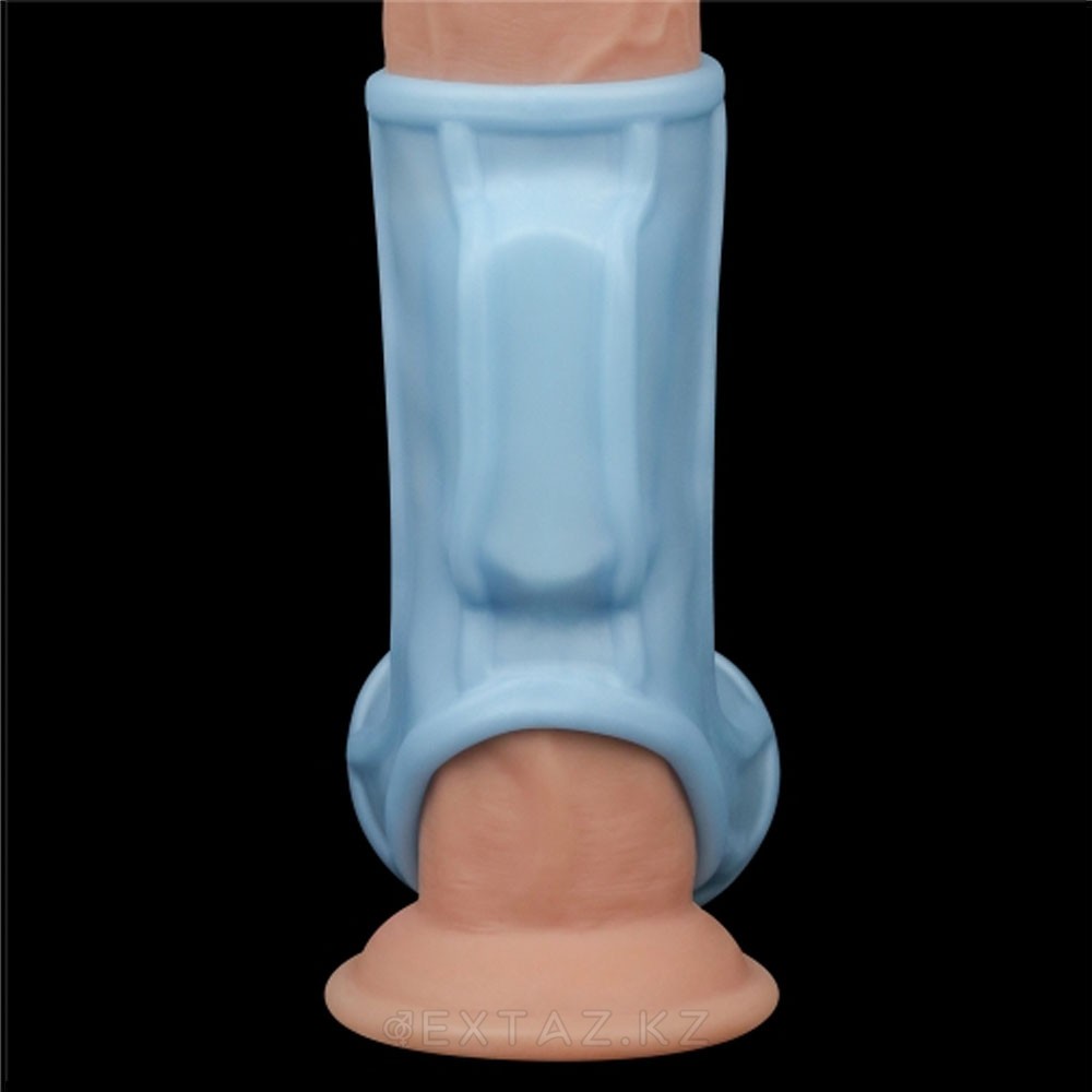 Насадка на пенис с вибрацией с рукавом для мошонки Ridge Knights Ring голубая (13,3*2,8)