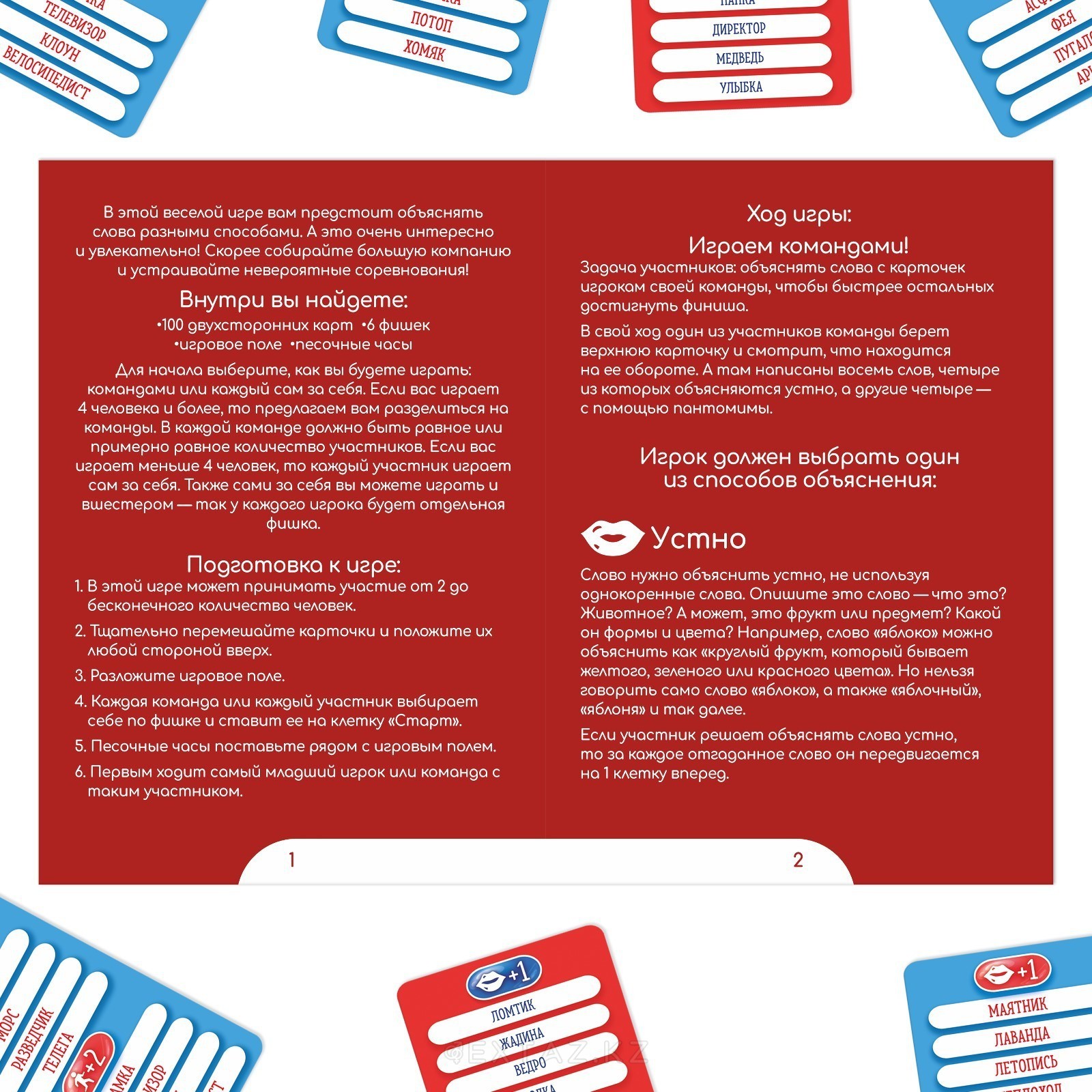 Игрокам предстоит объяснять слова разными способами — устно и с помощью пантомимы. Чем точнее и быстрее команда угадывает слова, тем быстрее её фишка движется к финишу. Игра проходит в быстром темпе и дарит много смеха и ярких эмоций.