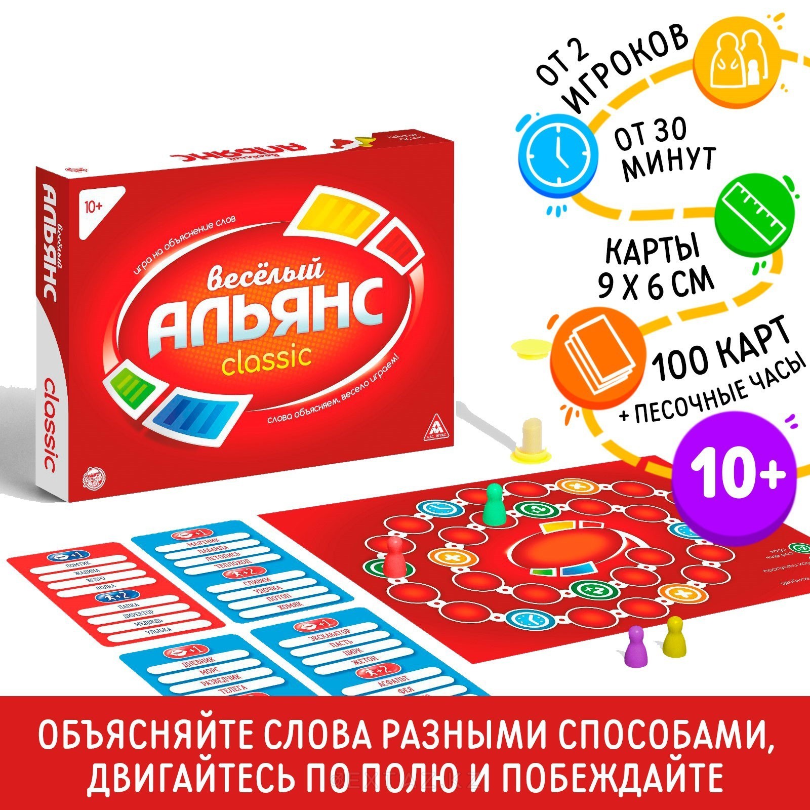 Настольная игра на объяснение слов «Весёлый альянс» — динамичная и весёлая игра для компании, в которой важно быстро мыслить, проявлять актёрские способности и работать в команде. Отлично подойдёт для вечеринок, семейных вечеров и дружеских встреч.