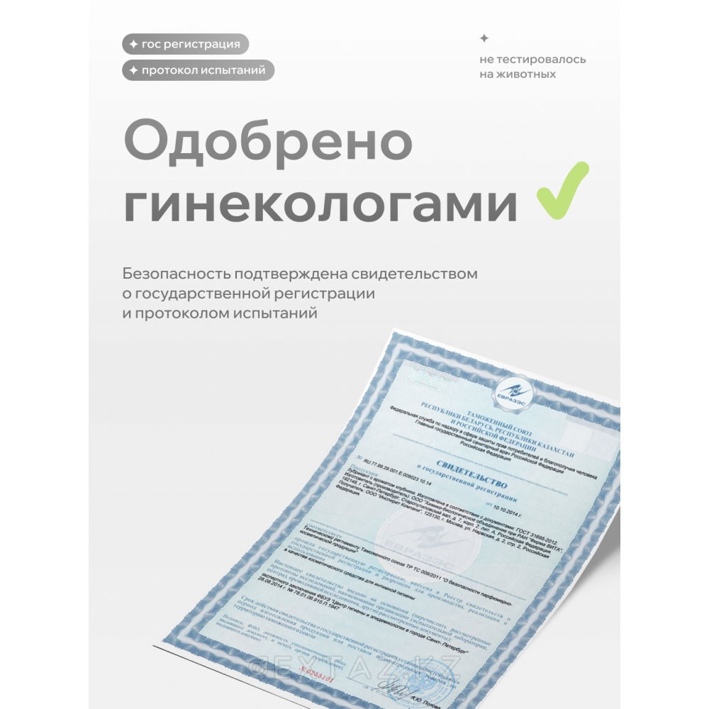 Сбалансированный уровень pH поддерживает комфорт при контакте. В составе используются компоненты растительного происхождения, которые дополняют формулу и способствуют деликатному воздействию на кожу.