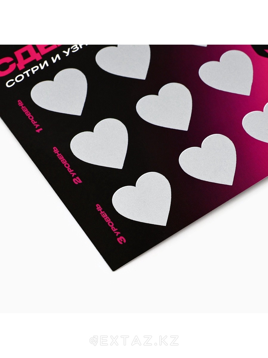 Под блестящим покрытием скрывается тайное сообщение, которое обязательно вызовет улыбку и подогреет интерес. Формат открытки позволяет легко вручить её лично или вложить в подарок, чтобы сделать момент ещё более неожиданным и запоминающимся.