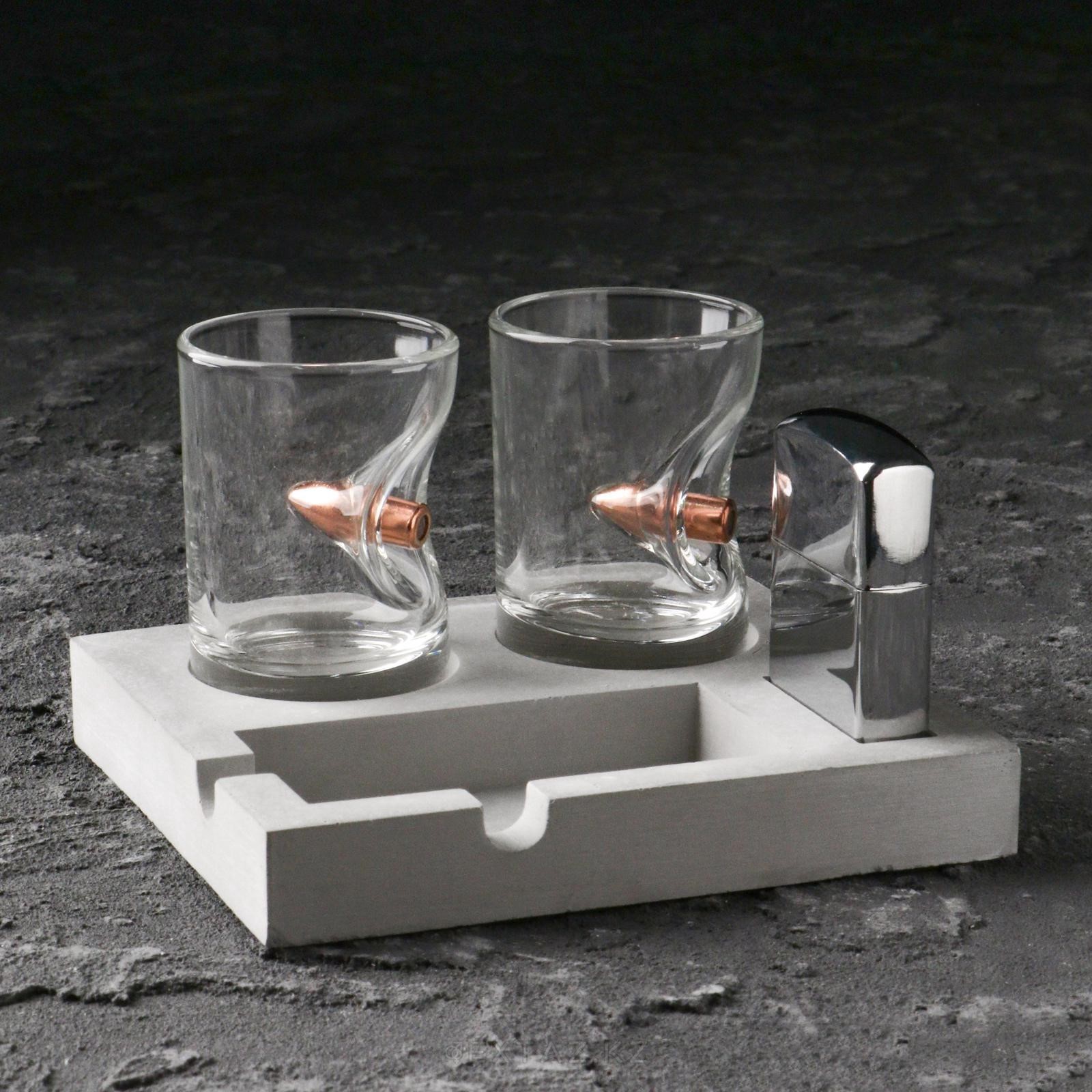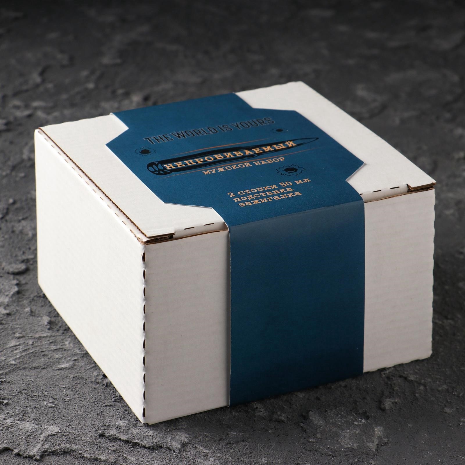 Подарочный набор «Непробиваемый»: 2 стопки 50 мл, зажигалка, подставка