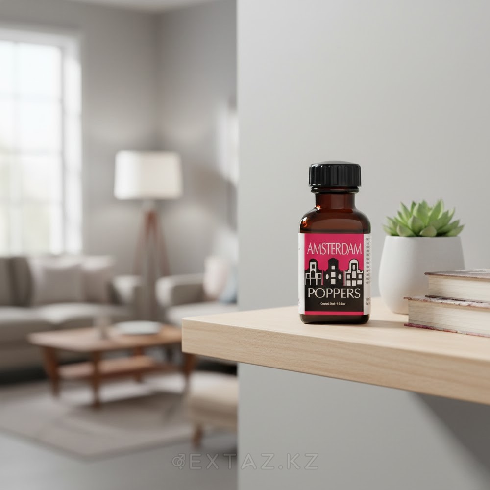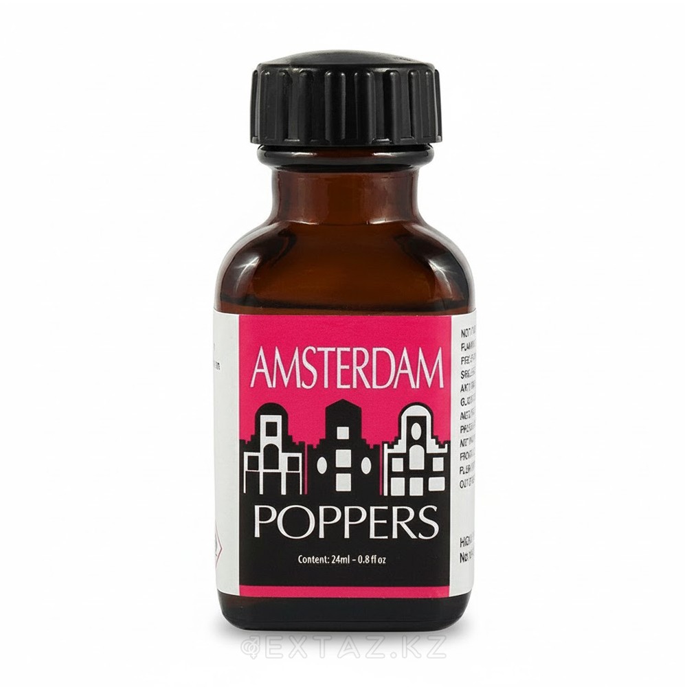 Попперс Amsterdam — летучее ароматическое вещество для ингаляционного применения во флаконе объёмом 24 мл. Продукт относится к категории попперсов и используется путём вдыхания паров в хорошо проветриваемом помещении с соблюдением мер предосторожности. Обладает выраженным ароматом. Эффект проявляется практически моментально — в течение нескольких секунд после первого вдоха — и носит кратковременный характер. При использовании методом испарения действие может быть более мягким и продолжительным. Флакон объёмом 24 мл рассчитан на многократное применение. Формат удобен для хранения и дозированного использования. Продукт применяется исключительно по назначению и не предназначен для приёма внутрь. Использование допускается только совершеннолетними. После применения запрещено управление транспортными средствами. Не допускается сочетание с алкогольными напитками и наркотическими веществами. Допускаются различные способы применения: ингаляция паров на расстоянии, использование маски для попперсов, а также испарение продукта в помещении. Независимо от выбранного способа необходимо избегать прямого контакта жидкости с кожей и слизистыми оболочками.