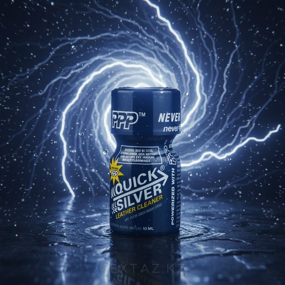 Попперс Quick Silver — летучее ароматическое вещество для ингаляционного применения во флаконе объёмом 10 мл. Продукт относится к категории попперсов и используется путём вдыхания паров в хорошо проветриваемом помещении с соблюдением мер предосторожности. Обладает средней силой действия. Эффект проявляется практически моментально — в течение нескольких секунд после первого вдоха — и носит кратковременный характер. Компактный флакон объёмом 10 мл удобен для хранения и дозированного использования. Продукт применяется исключительно по назначению и не предназначен для приёма внутрь. Использование допускается только совершеннолетними. После применения запрещено управление транспортными средствами. Не допускается сочетание с алкогольными напитками, наркотическими веществами и секс-стимуляторами. Допускаются различные способы применения: ингаляция паров на расстоянии, использование специальных аксессуаров для попперсов, а также испарение продукта в помещении. Независимо от выбранного способа необходимо избегать прямого контакта жидкости с кожей и слизистыми оболочками.
