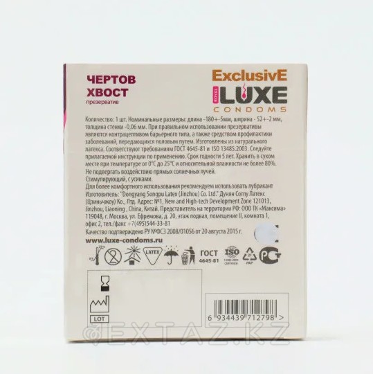 Презервативы Luxe Exclusive «Чертов хвост» с комбинированной рифлёй в виде спирали и «усиков» создают усиленную точечную стимуляцию стенок влагалища и ануса, позволяя достичь максимального возбуждения за считанные минуты.