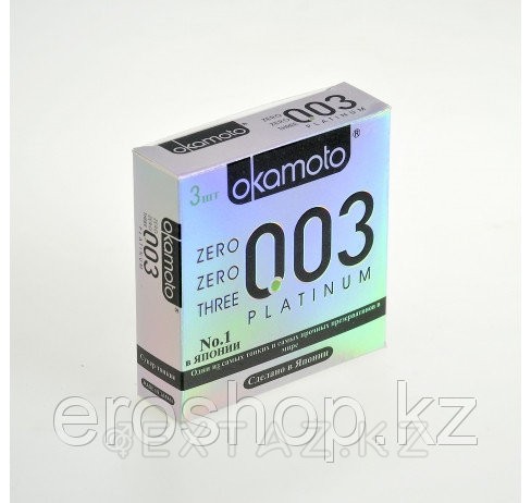 Это самые тонкие и прочные латексные презервативы в мире! Толщина стенки презервативов OKAMOTO 003 PLATINUM всего 0,03 мм, что в 2 раза тоньше, чем у обычных презервативов! Благодаря супер тонким стенкам презерватива обеспечивается максимальный уровень чувствительности при использовании. Презервативы произведены в Японии из натурального высококачественного японского латекса и проверены с использованием электростатической технологии для максимальной надежности.